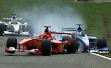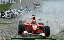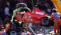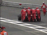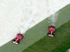 Umso mehr freuen wir uns über so schöne Szenen von havarierten, rauchenden, umherfliegenden Ferraris, und weinenden Schumis wie diesen :)))